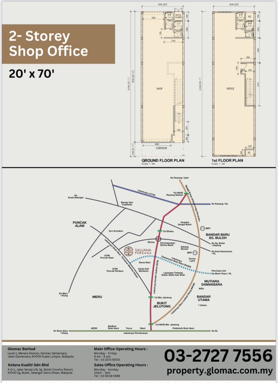 Kedai Pejabat 2-tingkat 20'x70' dengan keluasan binaan 2,800kp.